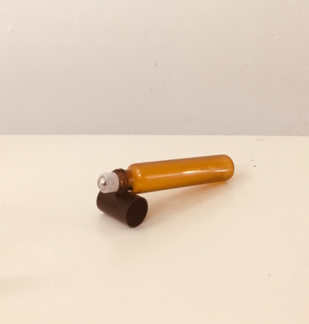 Frasco cristal roll.on 10ml. color ámbar y tapón con bola de acero.